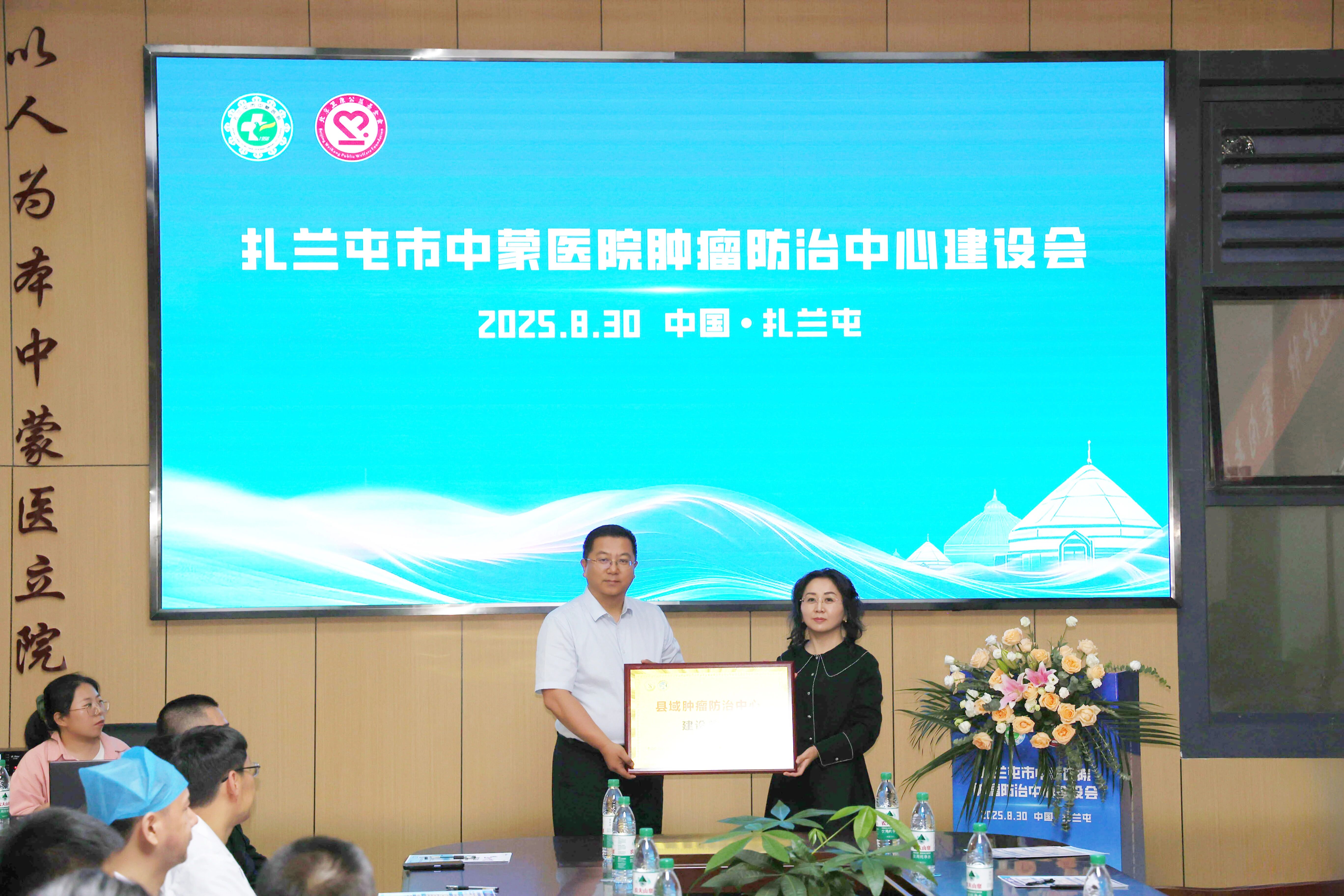 北京大学肿瘤医院陆明教授在会上为扎兰屯市中蒙医院“县域肿瘤防治中心建设单位”授牌。