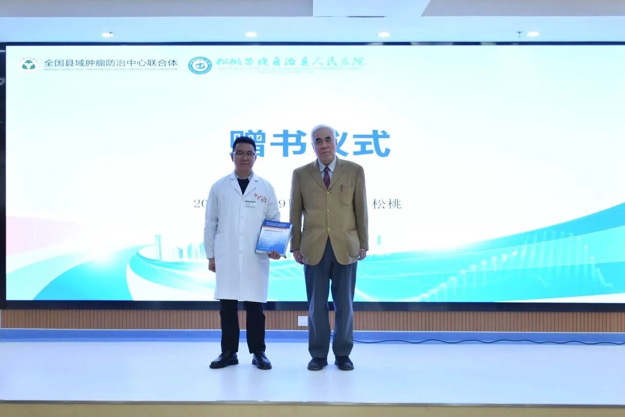 会上,赵平教授为松桃苗族自治县人民医院“县域肿瘤防治中心建设单位”授牌,并赠送肿瘤防治中心创建的相关指导书籍。