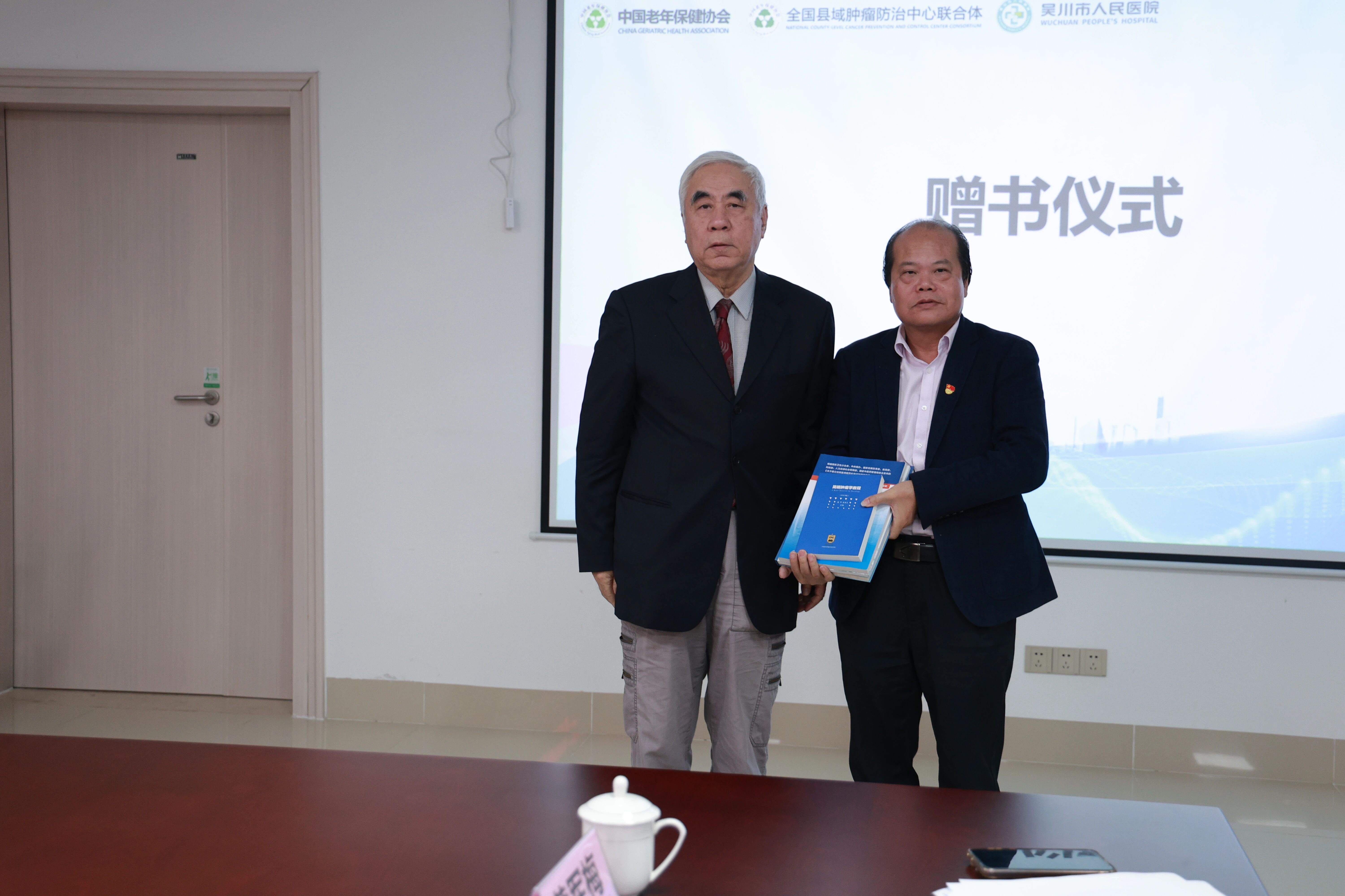赵平教授为吴川市人民医院赠送肿瘤防治中心创建相关指导书籍,为后续建设提供了参考。