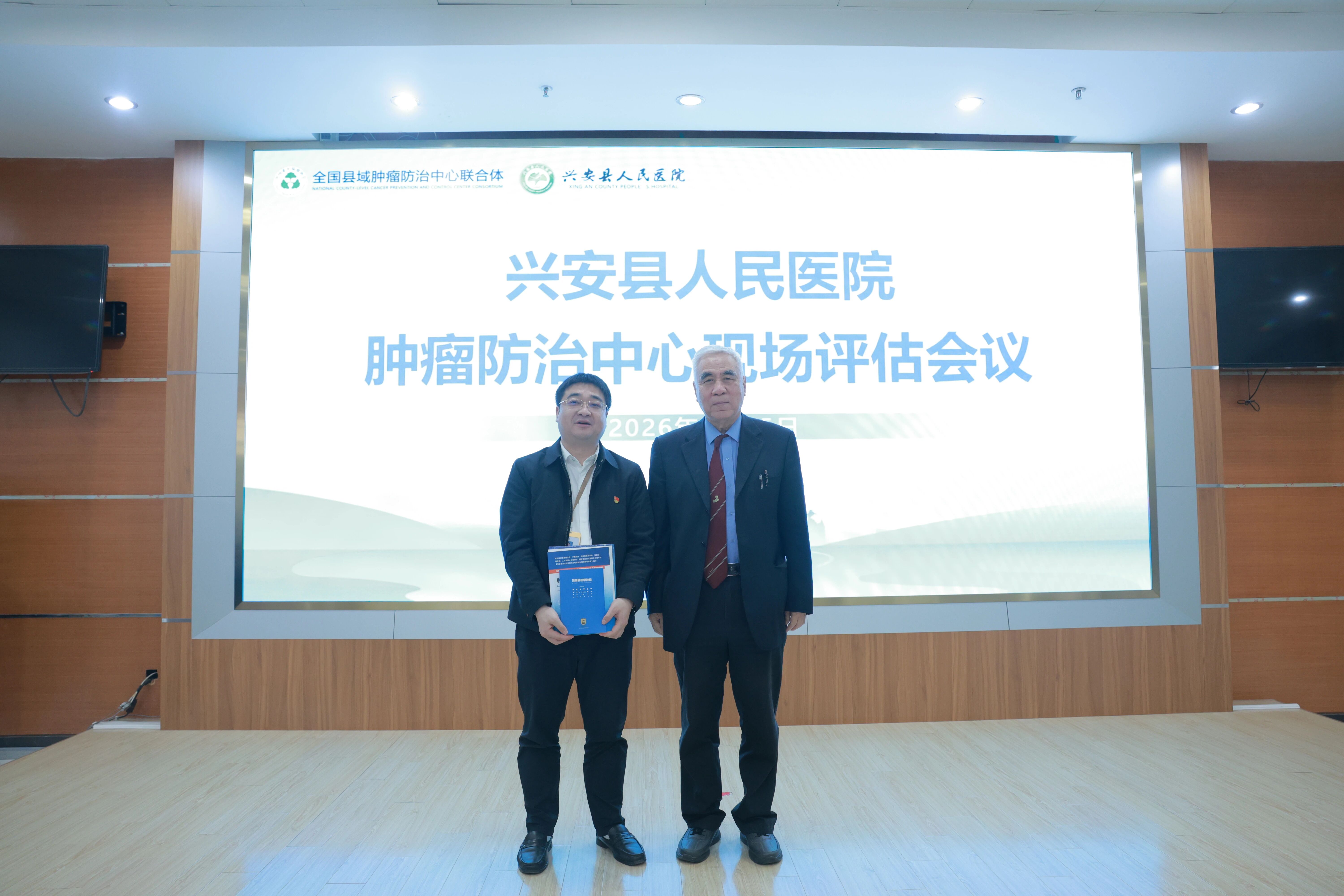为推进兴安县人民医院肿瘤防治中心建设更上一层楼,2026年1月15日,全国县域肿瘤防治中心联合体首席专家顾问、中国医学科学院肿瘤医院原院长、中国癌症基金会原理事长赵平,国家卫生健康委医院管理研究所研究员、国家卫生健康委员会标准委员会医疗机构管理标准专业委员会副秘书长王春玉,中国癌症基金会副秘书长、内蒙古自治区肿瘤医院原院长赵全年,广西医科大学附属肿瘤医院副院长、广西抗癌协会理事会副理事长、广西抗癌协会肿瘤标志委员会主任委员余红平等一行7人组成的县域肿瘤防治中心建设评估项目专家组走进广西兴安县,对县人民医院肿瘤防治中心建设情况进行现场评估。